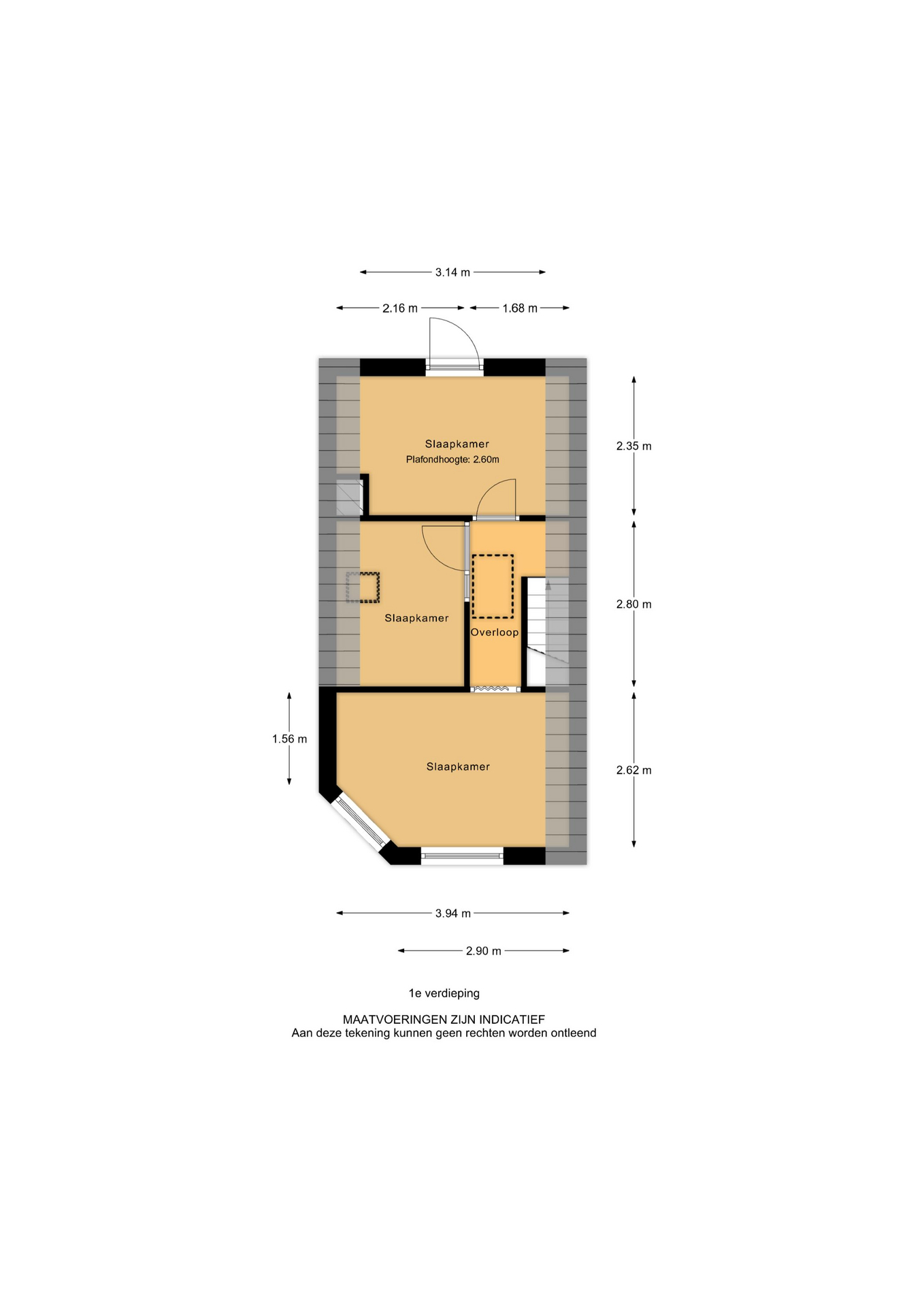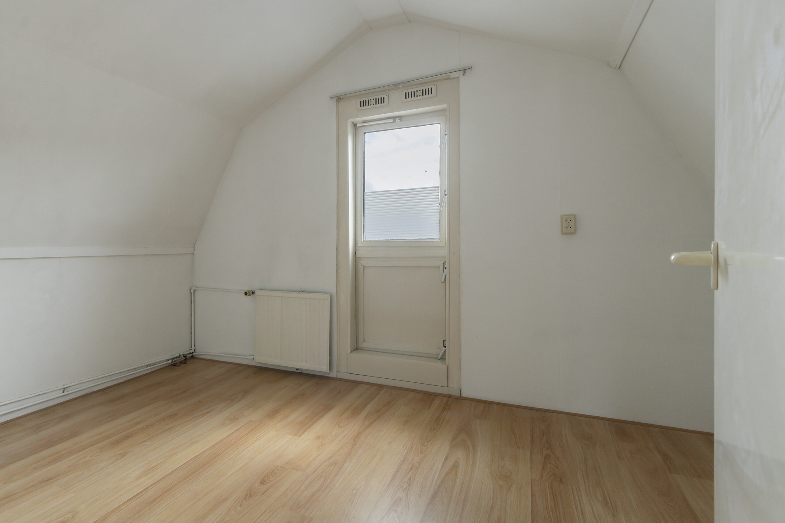 Overloop met toegang tot drie slaapkamers: slaapkamer 1 aan de voorzijde, slaapkamer 2 aan de achterzijde en slaapkamer 3 aan de zijkant, voorzien van een dakraam. Ook deze verdieping is volledig afgewerkt met een laminaatvloer.