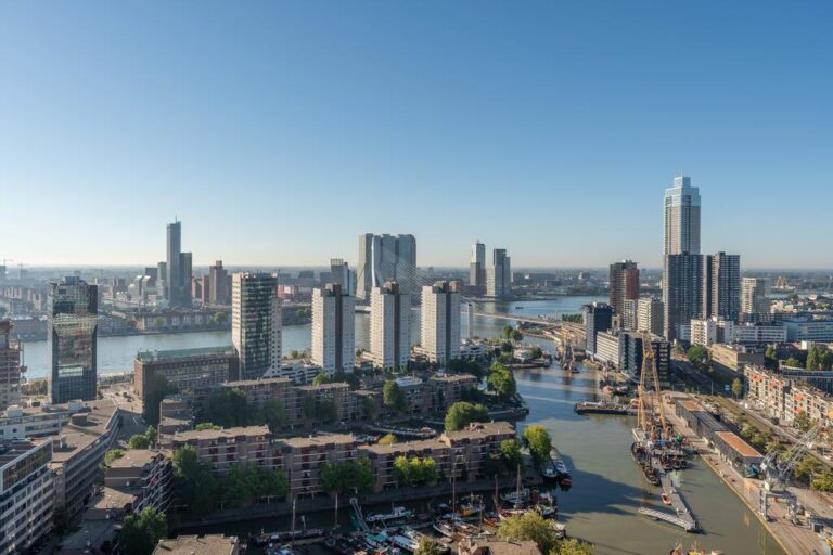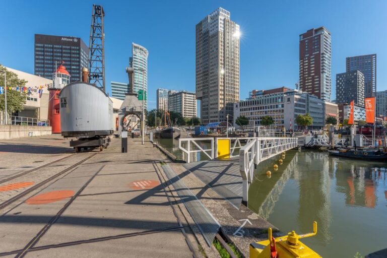 Fenomenaal vrij uitzicht door de unieke hoekligging op de Maas, de Erasmusbrug, de stad en het havengebied.