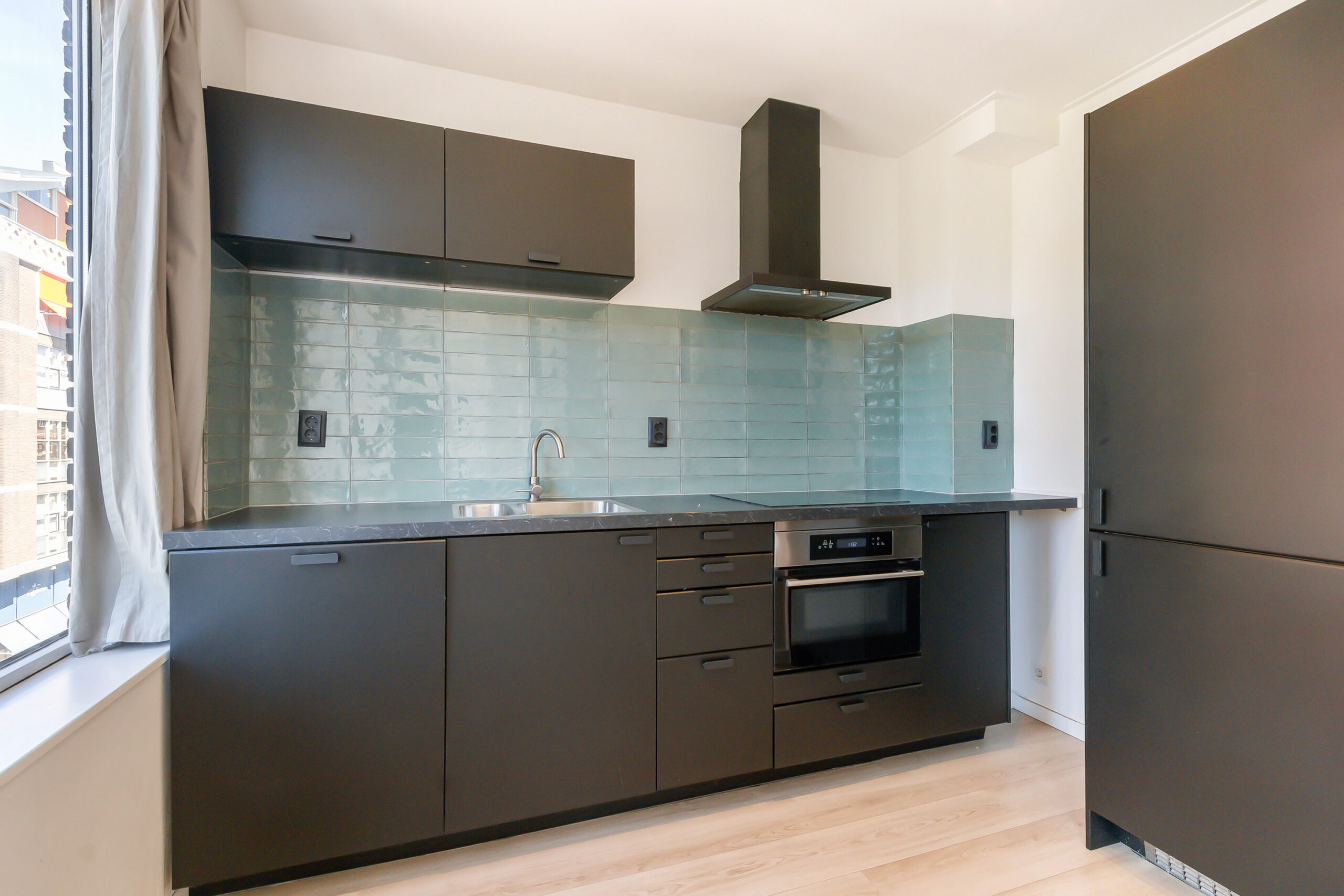 Hier woont u echt in het stadse leven dus bij de gezellige restaurantjes, koffietentjes, de populaire Markthal en alle stadse gemakken, maar toch ook heerlijk rustig tegenover een gezellig stadsparkje. Een perfecte mix vinden wij.
