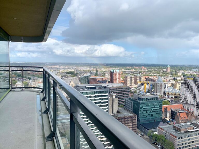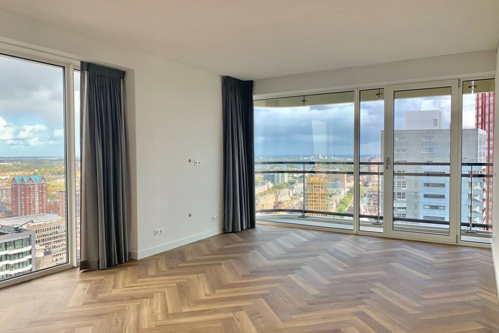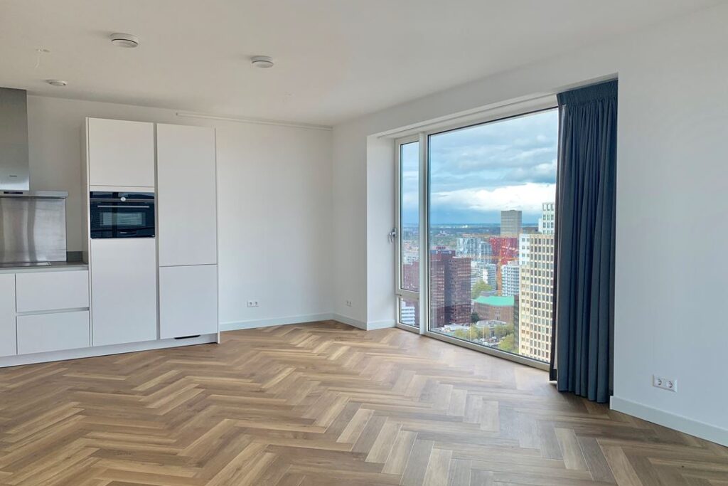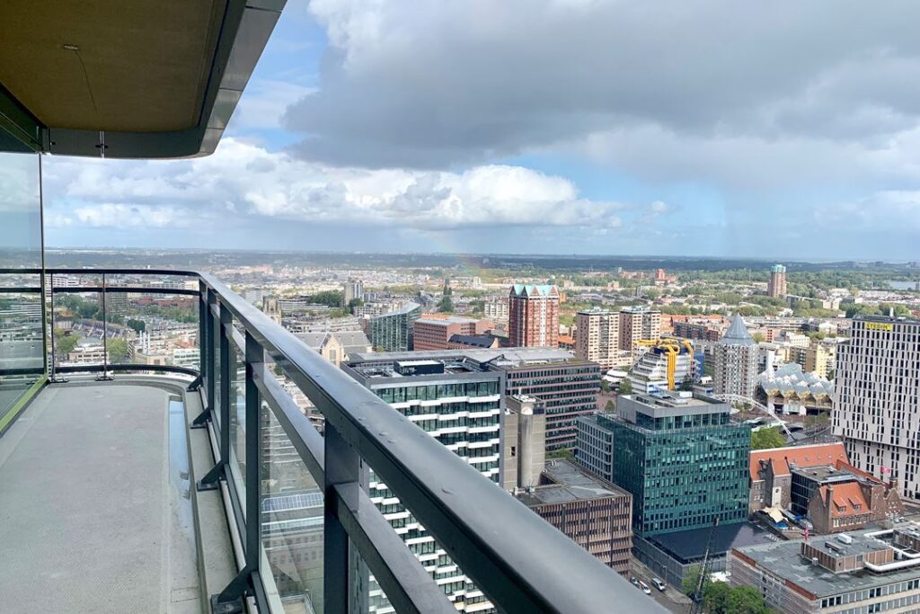FOR RENT: Beautifully furnished and nicely finished, as good as new apartment on the 32nd floor in the Up:town complex in Rotterdam center. Thanks to the spacious balcony and the many windows you have a amazing view over Rotterdam from this apartment! The complex is so centrally located that all amenities such as shops and public transport are within walking distance.