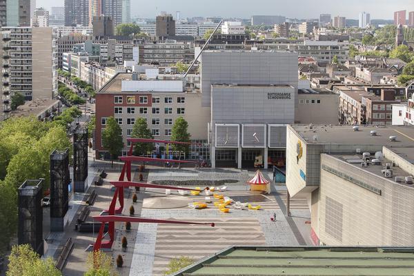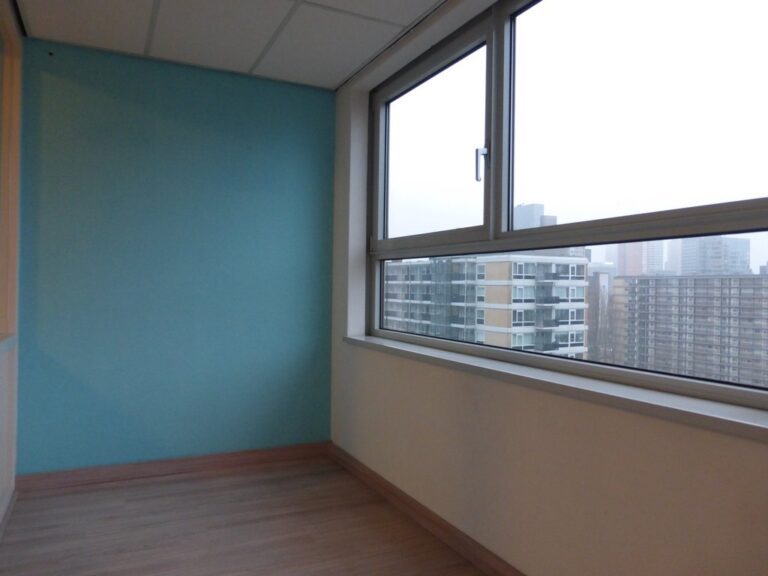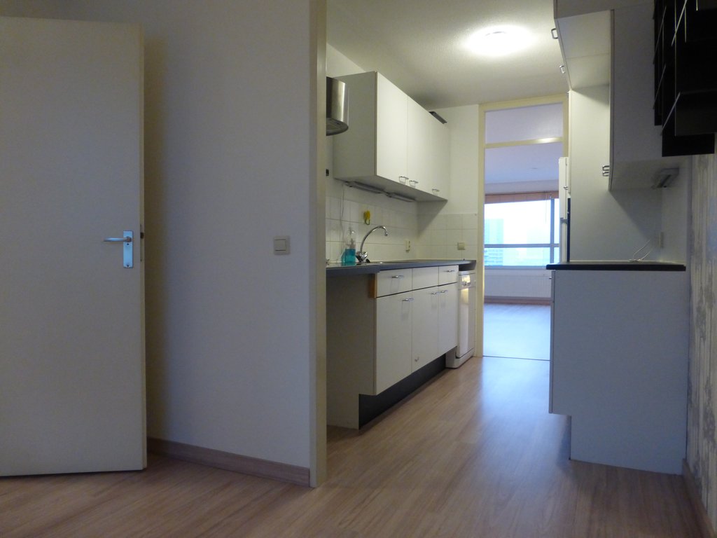 FOR RENT: A partly furnished renovated 3-room apartment in the epicenter Rotterdam, on the 8th floor of the classy building "Plaza". The location is unique ; in the middle of the dynamic city centre with the central train station on 3 minutes walk! From the living room you have a wide view over the skyline and Schouwburgplein. When you step out the building, you are in immediate connection with shops, restaurants, bars, cinema and several cultural locations. Large storage room in the basement.