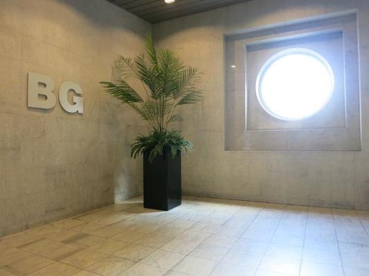 Main entrance with mailboxes and access to the elevators and the staircase.