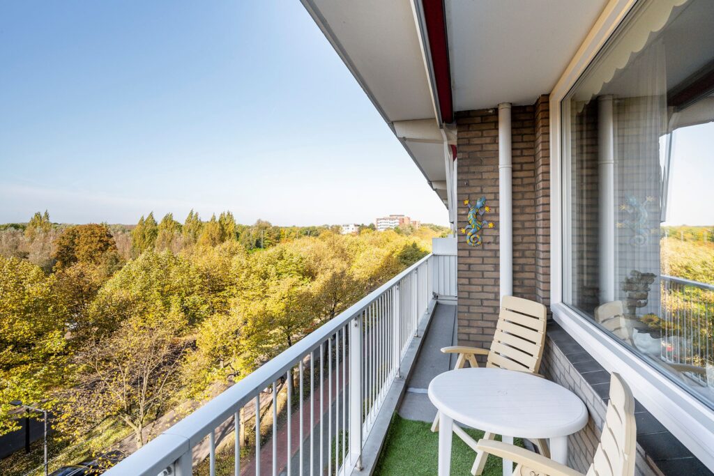 features a sunny west-facing balcony with expansive views of the Broekpolder nature reserve.